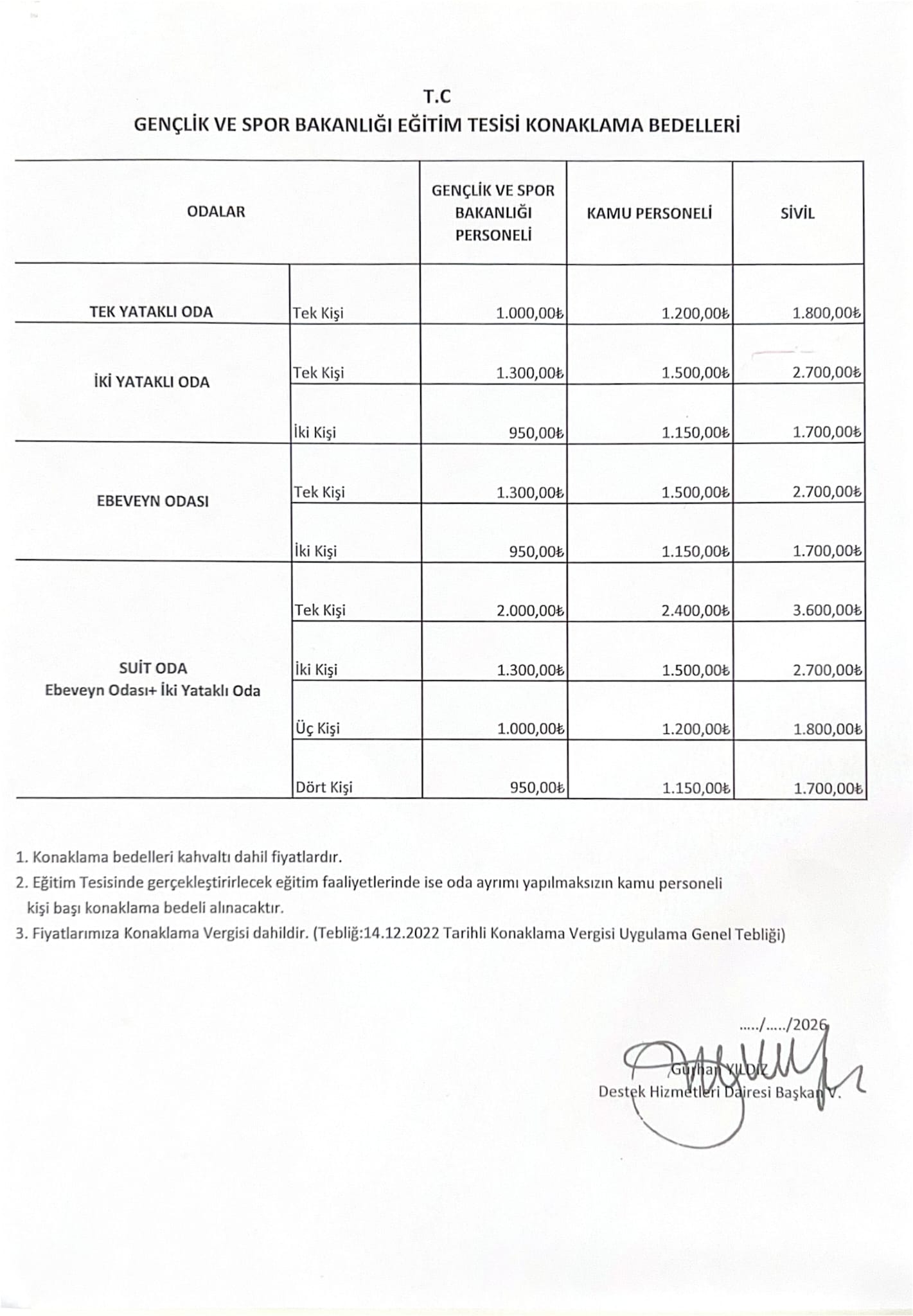 1 şubat 2022 tarihinden sonra doğan çocuklar için konaklama bedeli alınmaz.