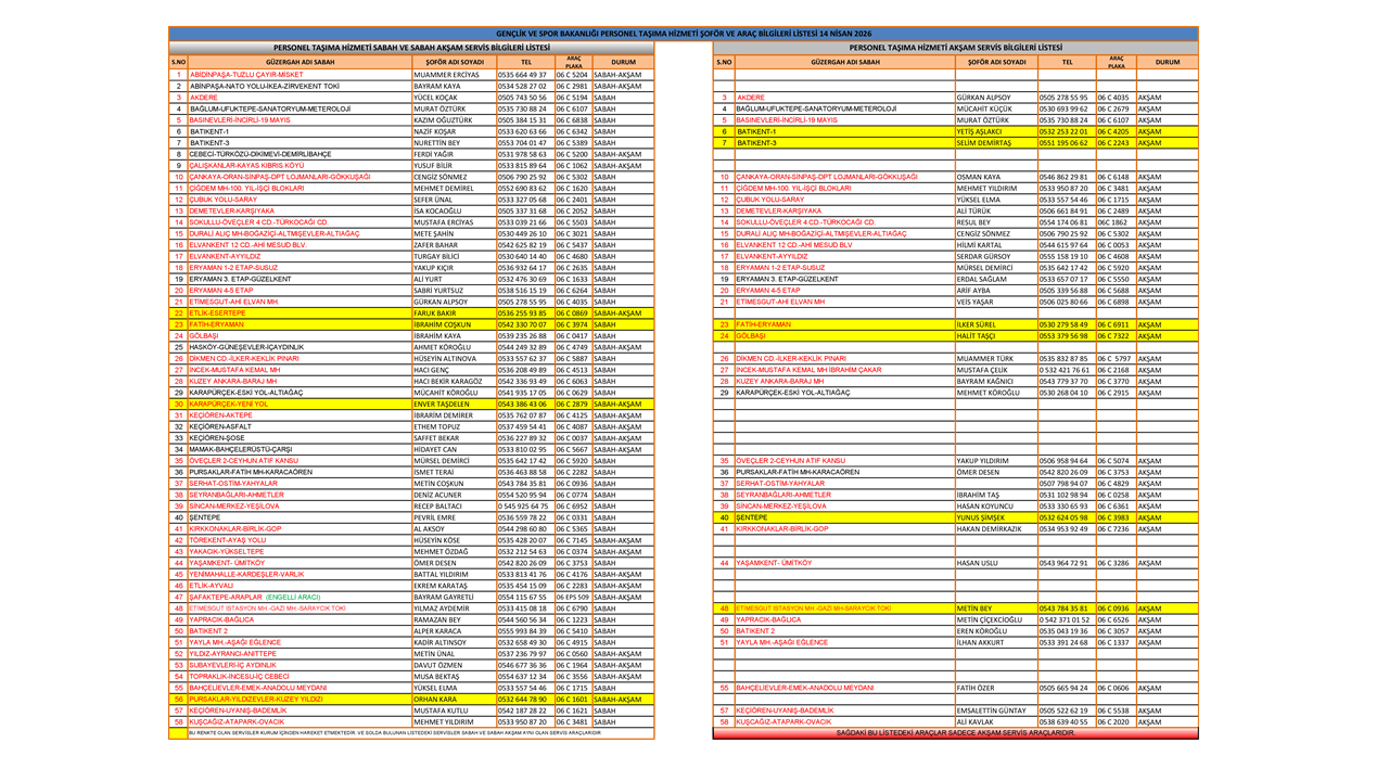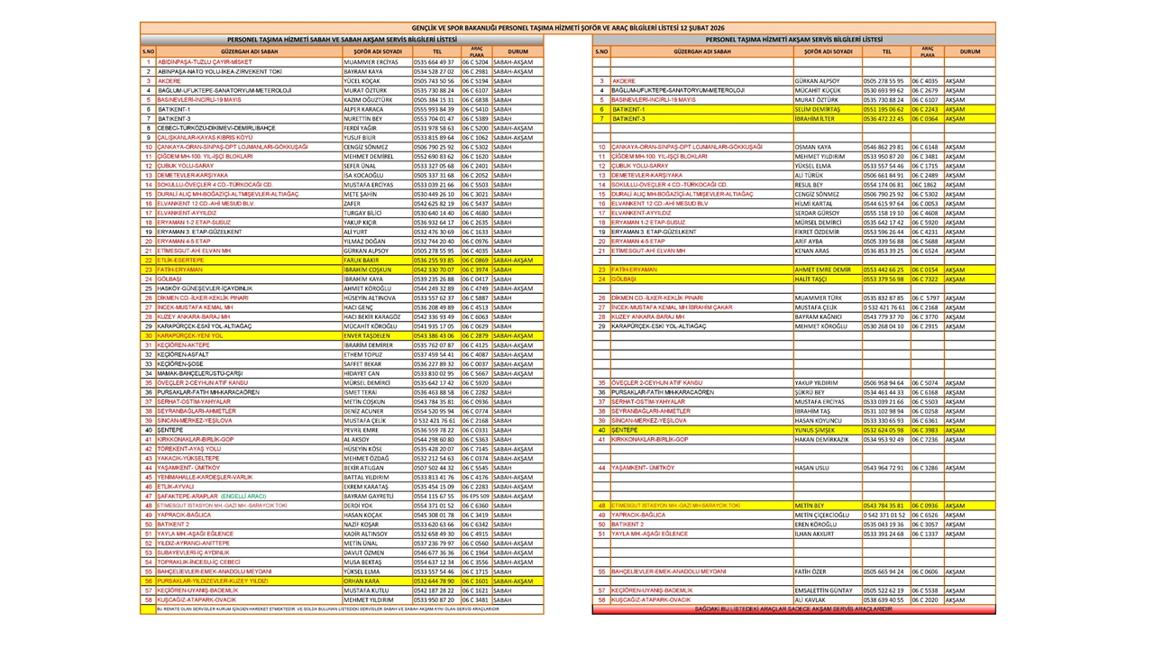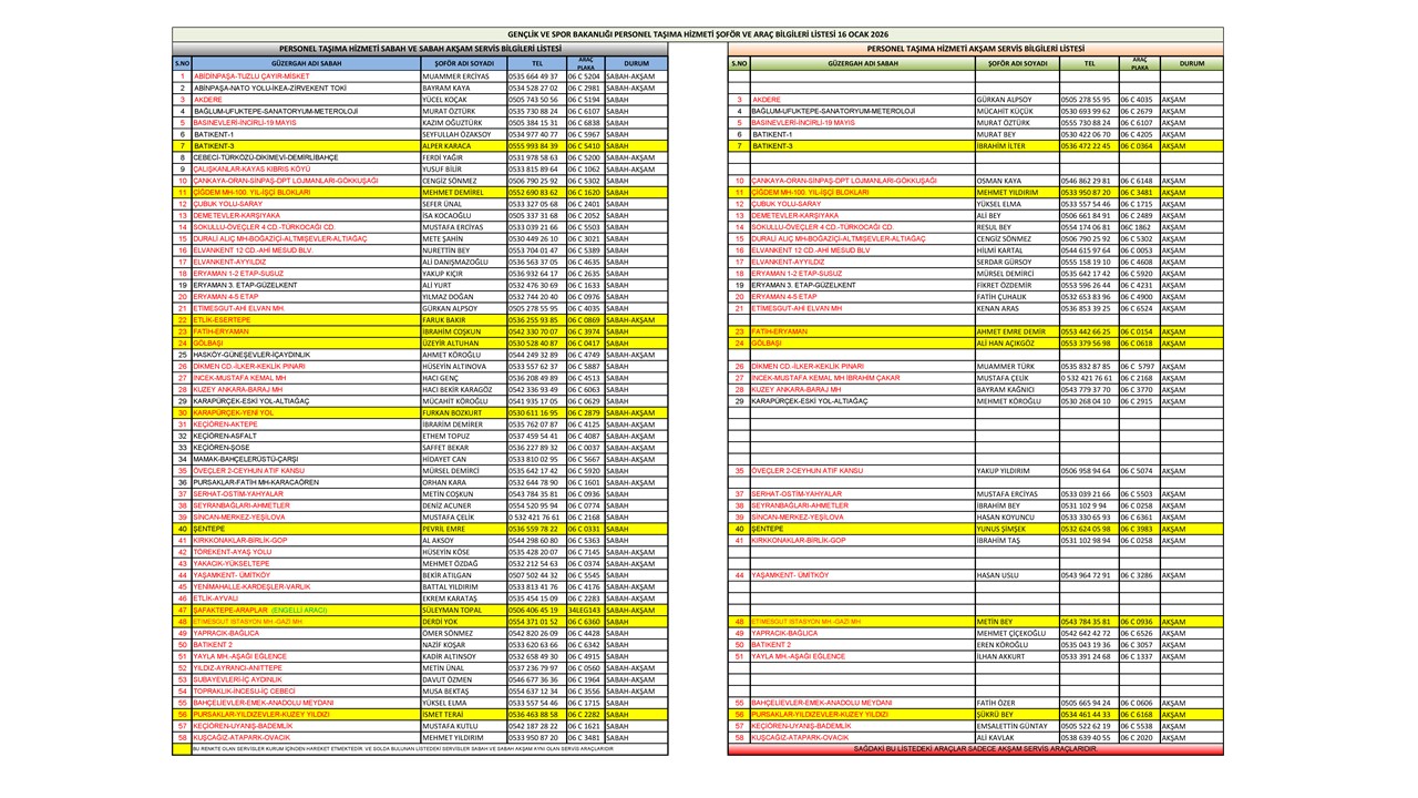 2026 YILINDA KULLANILACAK YENİ PERSONEL SERVİS GÜZERGAHLARI 22 ARALIK 2025 TARİHİ İTİBARİ İLE SİSTEME YÜKLENMİŞTİR.