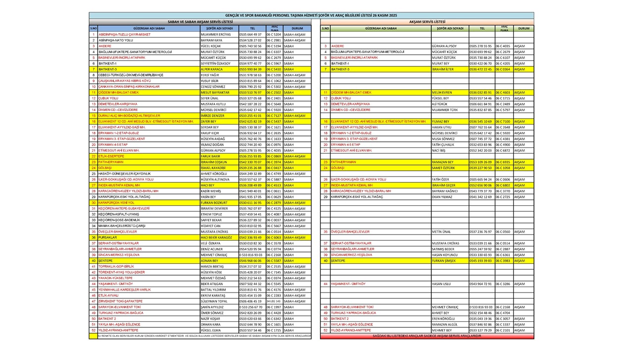 *SERVİS KAYDI YAPMAYAN PERSONEL SERVİS HİZMETİNDEN YARARLANAMAYACAKTIR.